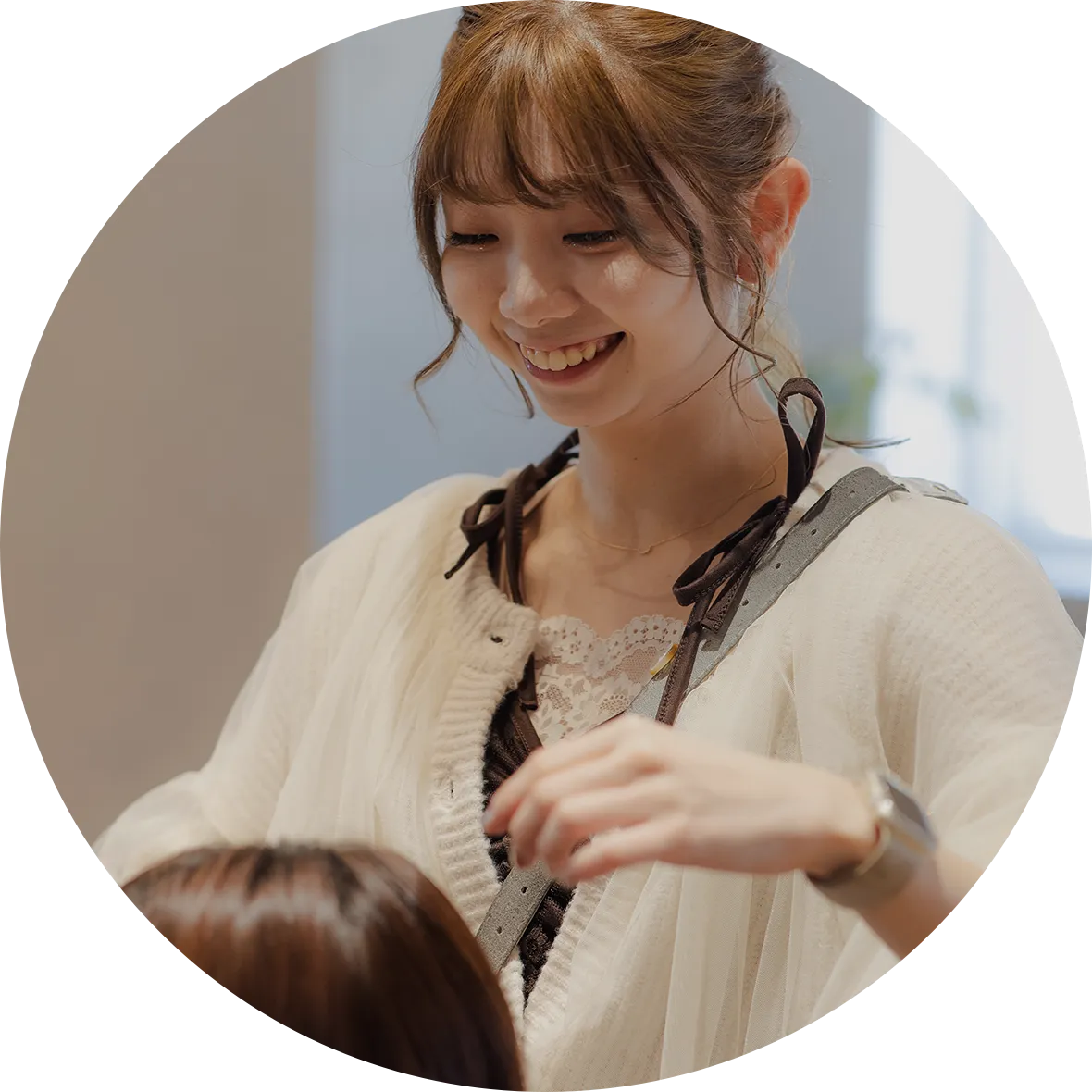 スタイリストデビューまでは一人のアシスタントに専属トレーナーがつき、マンツーマン体制でデビューまでをバックアップします。技術をレクチャーしてもらえるのはもちろん、独自のカリキュラムに加え、スタッフ一人ひとりの成長を支えるためのサポート体制を整えており、安心して学びに集中できる環境の中で、着実なスキルアップを目指していただけます。